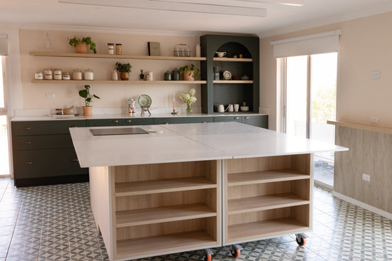 Consta de 4 módulos, uno de ellos es fijo y alberga la encimera de inducción.Los otros tres módulos se pueden mover y guardar en la terraza para mayor espacio y comodidad.